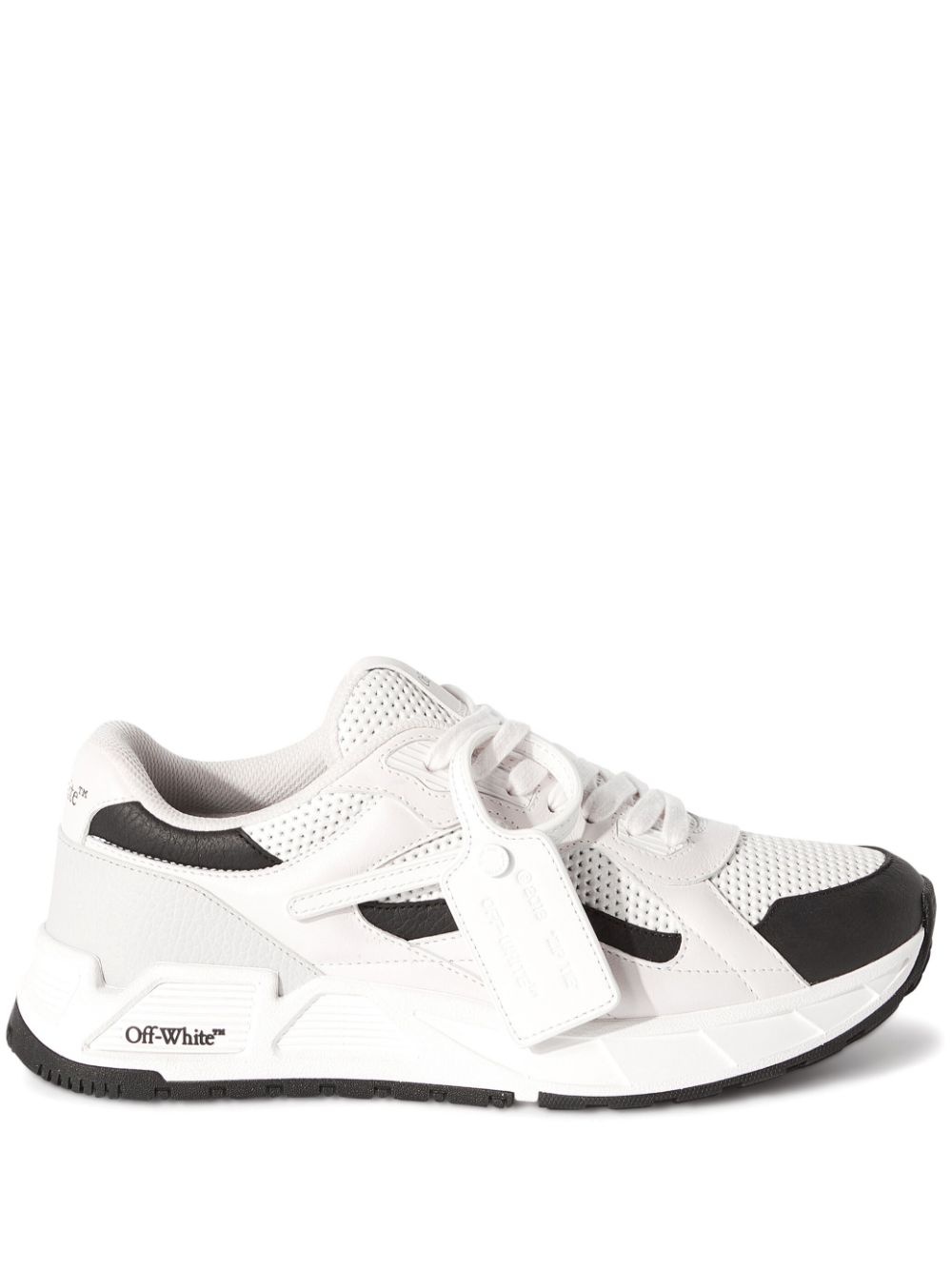 Kick Off low-top sneakers The Kick Off sneakers from Off-White are panelled to a low-top silhouette from rubber, leather and mesh. Distinctive details – like the "shoelaces" slogan and logo at the sole and tongue – complete the monochrome design. Highlights - Black/white - Canvas/leather - Logo-print tongue - Front lace-up fastening - Signature zip tie tag - Round toe - Flat rubber sole Made in Italy Composition Lining: Polyester 100% Sole: Rubber 100% Outer: Leather 100% SIZE & FIT Measurement HEEL 1.57 in(4 cm) Sole height 0.78 in(2 cm)