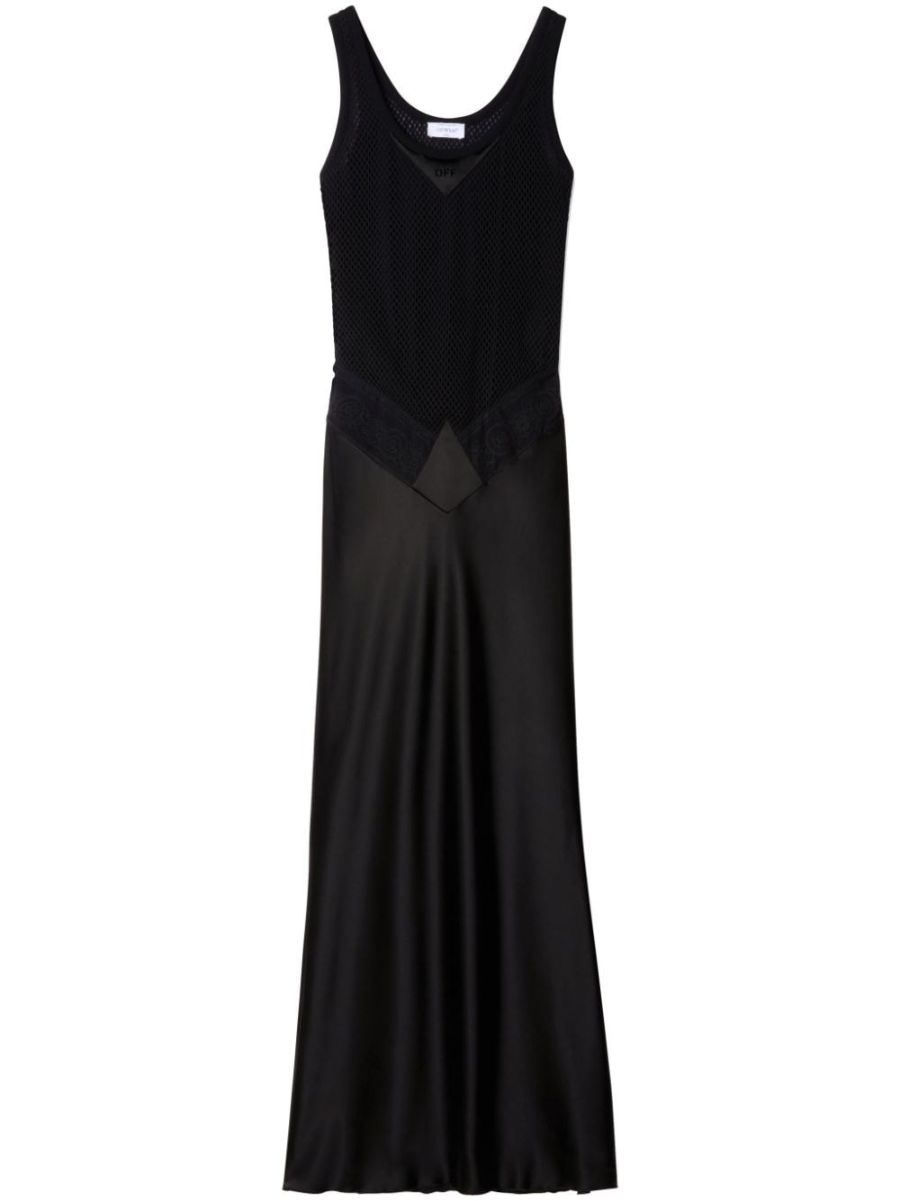 lace-panel satin maxi dress Highlights - Black - Cotton - Mesh panelling - Satin weave - Lace panelling - U-neck - Sleeveless - Floor-length Made in Italy Composition Cotton 100%