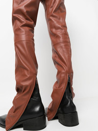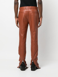 Lea buckled leather trousers Off-White's industrial influences appear along the waist of these skinny trousers. Cut from smooth terracotta brown leather, they are detailed with a buckle fastening in a tonal hue. Imported Composition Lining: Cotton 100%, Viscose 53%, Cupro 47% Outer: Leather 100% SIZE & FIT Model measurements Height 6 ft 0 in(1.84 m) Bust/Chest 36.22 in(92 cm) Hips 35.43 in(90 cm) Waist 26.77 in(68 cm) FittingInformation This piece fits true to size. We recommend you get your regular size Cut for a slim fit Made with a mid-weight non-stretch fabric Washing instructions Specialist Cleaning