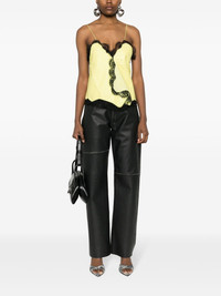 leather lace-detail top Off-White gives a rather delicate finish to this leather top. Boasting a draped front, it is decorated with an unexpected lace trim. Highlights - Chartreuse yellow, black - Nappa leather - Panelled design - Floral-lace detailing - V-neck - Spaghetti straps - Logo stamp to the front - Curved hem Imported Composition Outer: Lambskin 100%, Polyamide 40%, Cotton 32%, Modal 28% Lining: Viscose 100% SIZE & FIT Model measurements Height 5 ft 11 in(1.8 m) Bust/Chest 31.49 in(80 cm) Hips 36.61 in(93 cm) Waist 24.4 in(62 cm) FittingInformation Designed for a slim fit that sits just away from the body offering a close yet comfortable fit Soft leather has a supple and smooth construction offering some flexibility This piece fits true to size – take your usual size Washing instructions Specialist Cleaning