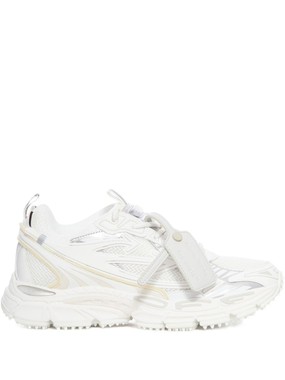 leather-tag lace-up sneakers Highlights - White - Leather construction - Lace-up fastening - Ridged rubber sole - Leather tag - Mesh panelling Imported Composition Lining: Fabric 100% Outer: Leather 89%, Polyester 11% Sole: Rubber 100%