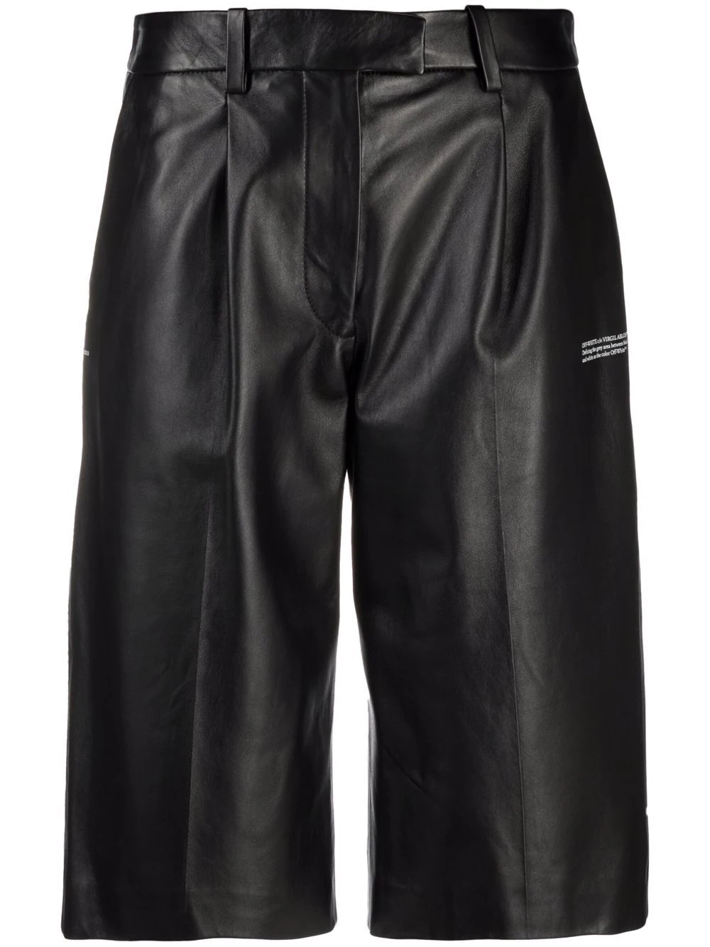 leather tailored shorts A reinvention of the classic tailored shorts, this black pair showcases a distinct leather construction. Presented as part of Off-White’s AW21 collection, this piece captures the label’s audacious spirit. Imported Composition Outer: Leather 100% Lining: Cotton 100%, Viscose 52%, Cupro 48% SIZE & FIT Model measurements Height 5 ft 9 in(1.75 m) Bust/Chest 34.64 in(88 cm) Hips 36.61 in(93 cm) Waist 26.37 in(67 cm) FittingInformation This piece fits true to size. We recommend you get your regular size Designed to be fitted at the waist and hips, loose over the leg Made with a mid-weight non-stretch fabric Washing instructions Specialist Cleaning