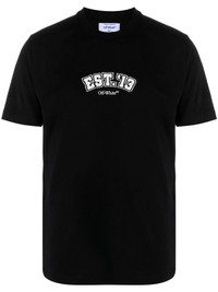Logic cotton T-shirt This Off-White T-shirt is cut from cotton for a slim fit. It pays homage to Virgil Abloh and the label's future projects with a reinvention of heritage prints on the back, while the brand's founding year is spotlighted on the front. Highlights - Black/multicolour - Cotton - Embroidered design - Graphic print to the rear - Crew neck - Short sleeves - When buying this unisex item, keep in mind that it is graded in standard men's sizing. Imported Composition Cotton 100% SIZE & FIT Measurement CHEST 38.58 in(98 cm) SLEEVE LENGTH 8.26 in(21 cm) LENGTH 25.59 in(65 cm) Washing instructions Machine Wash