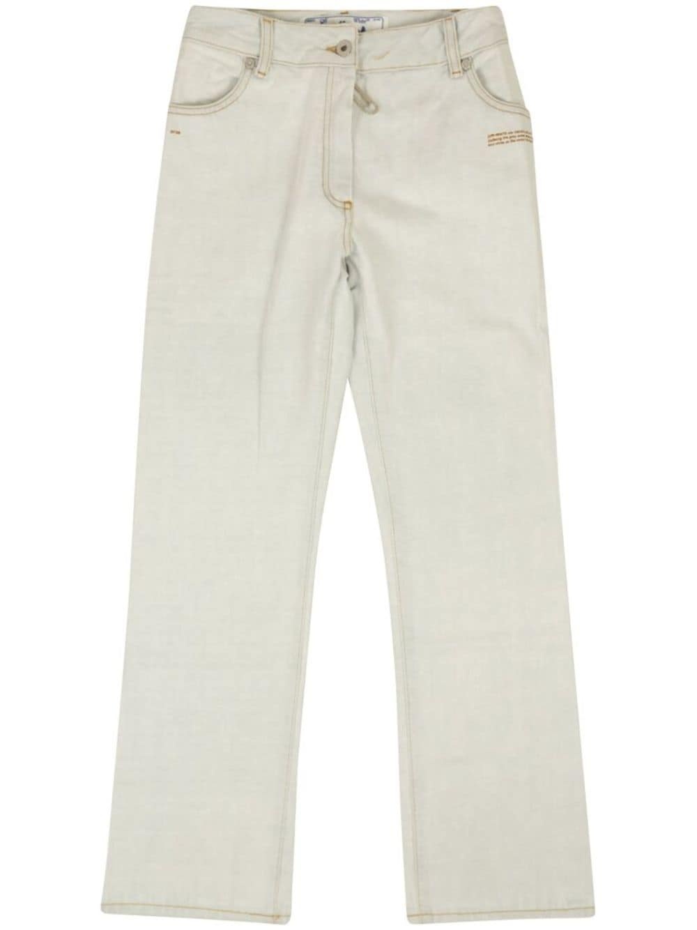logo-applique cropped jeans Off-White's casual aesthetic is evidenced in these jeans, arriving in a classic light-washed denim construction and cropped silhouette. Highlights - Light blue - Cotton - Applique logo - Contrast stitching - Belt loops - Front button fastening - Two rounded pockets to the sides - Two rear patch pockets - Cropped leg Made in Italy Composition Cotton 100% Washing instructions Read Manufacturer Guidelines