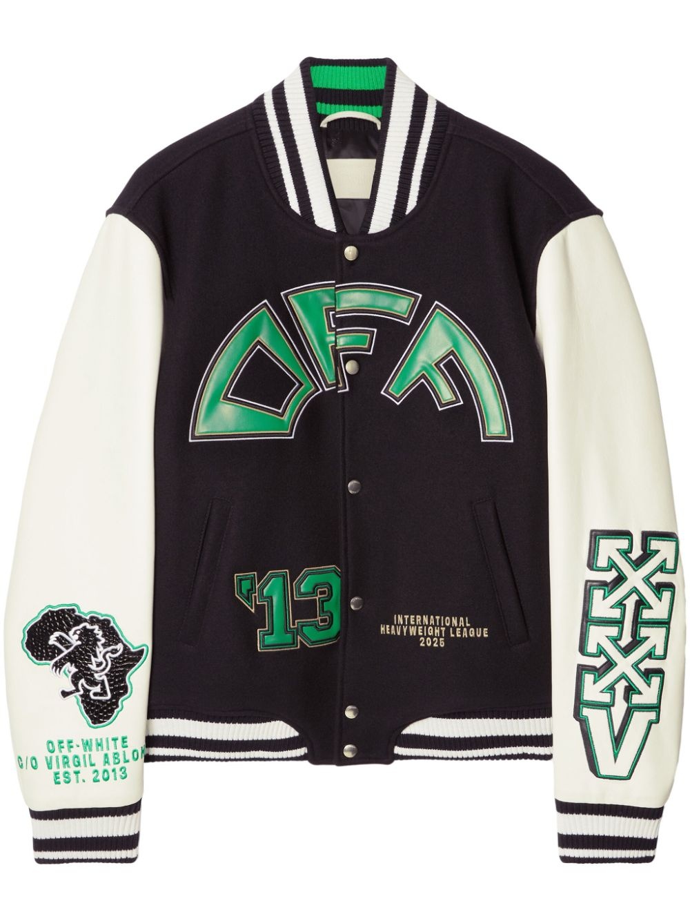 logo-applique bomber jacket Highlights - Black - Front press-stud fastening - Two side welt pockets - Ribbed trim - Signature arrows motif Made in Italy Composition Outer: Leather 100%, Virgin Wool 75%, Polyamide 25% Lining: Viscose 100%
