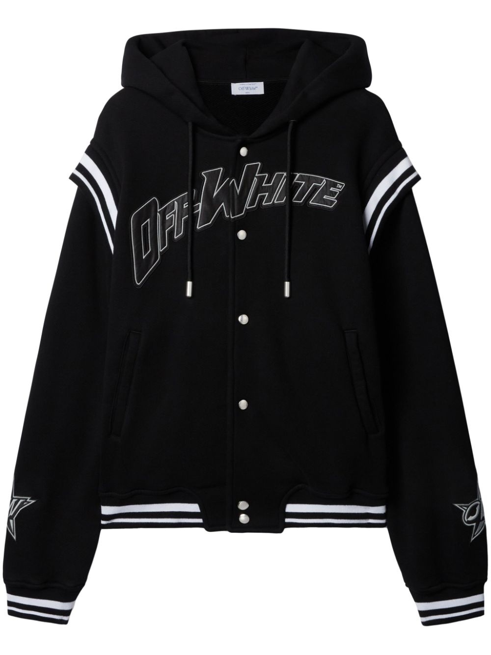 logo-applique bomber jacket Highlights - Black - Front press-stud fastening - Two side welt pockets - Drawstring hood - Ribbed trim Imported Composition Cotton 100%