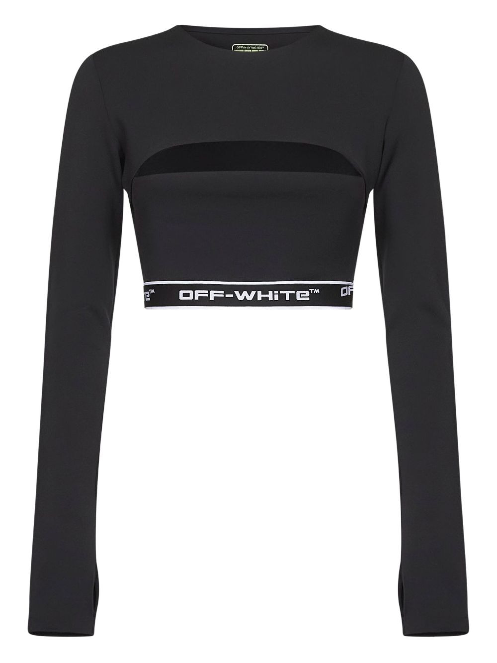 logo-detail long-sleeves top Highlights - Black - Crew neck - Long sleeves thumbholes - Cut-out detail front - Logo detail back - Elasticated band bottom Imported Composition Polyamide 86%, Elastane 14% Washing instructions Read Manufacturer Guidelines