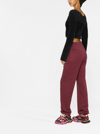 logo-detail sweatpants Presented in a rich shade of burgundy red, these Off-White track pants showcase a hint of the brand's graphic-leg aesthetic as they are printed with the brand's graffiti-style logo on the front. Imported Composition Cotton 100% SIZE & FIT Model measurements Height 5 ft 10 in(1.78 m) Bust/Chest 30.31 in(77 cm) Hips 36.61 in(93 cm) Waist 24.8 in(63 cm) FittingInformation This piece fits true to size. We recommend you get your regular size Designed to be loose over the leg with a fitted waist and hem Made with a mid-weight fabric Washing instructions Machine Wash