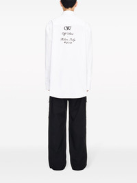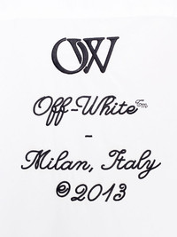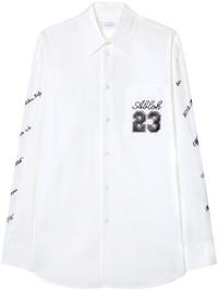 logo-embroidered cotton shirt Off-White infuses this crisp cotton shirt with signature motifs and basketball inspiration. It's embroidered with contrasting logos and the number 23, a nod to Michael Jordan. Highlights - White/black - Cotton - Embroidered logo - Number patch to the front - Straight-point collar - Front button fastening - Long sleeves - Curved hem Made in Italy Composition Cotton 100% Washing instructions Read Manufacturer Guidelines
