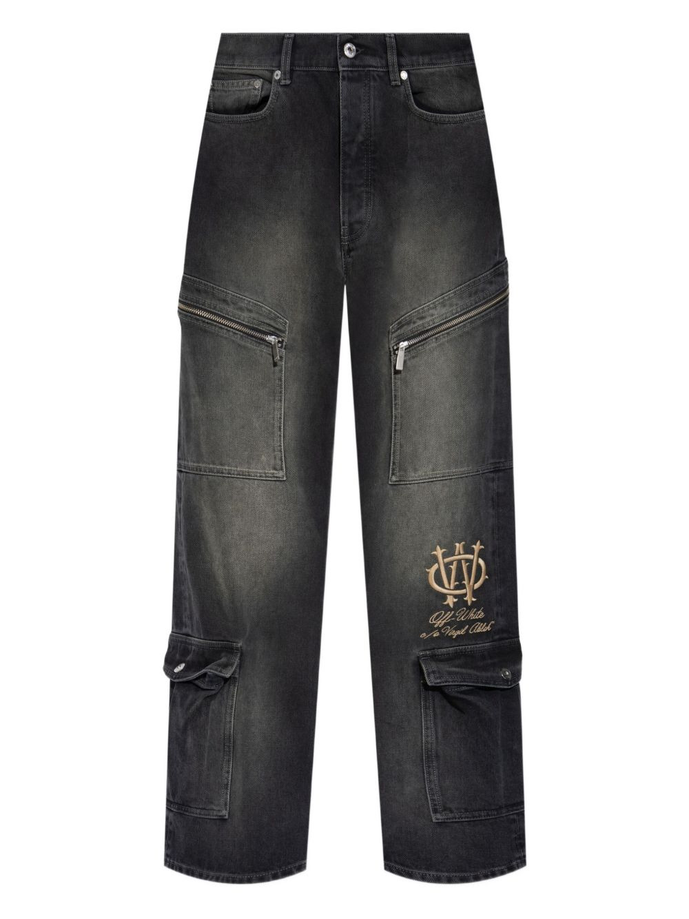 logo-embroidered jeans Highlights - Dark grey - Zip pockets - Button fastening Imported Composition Fabric 100% Washing instructions Read Manufacturer Guidelines