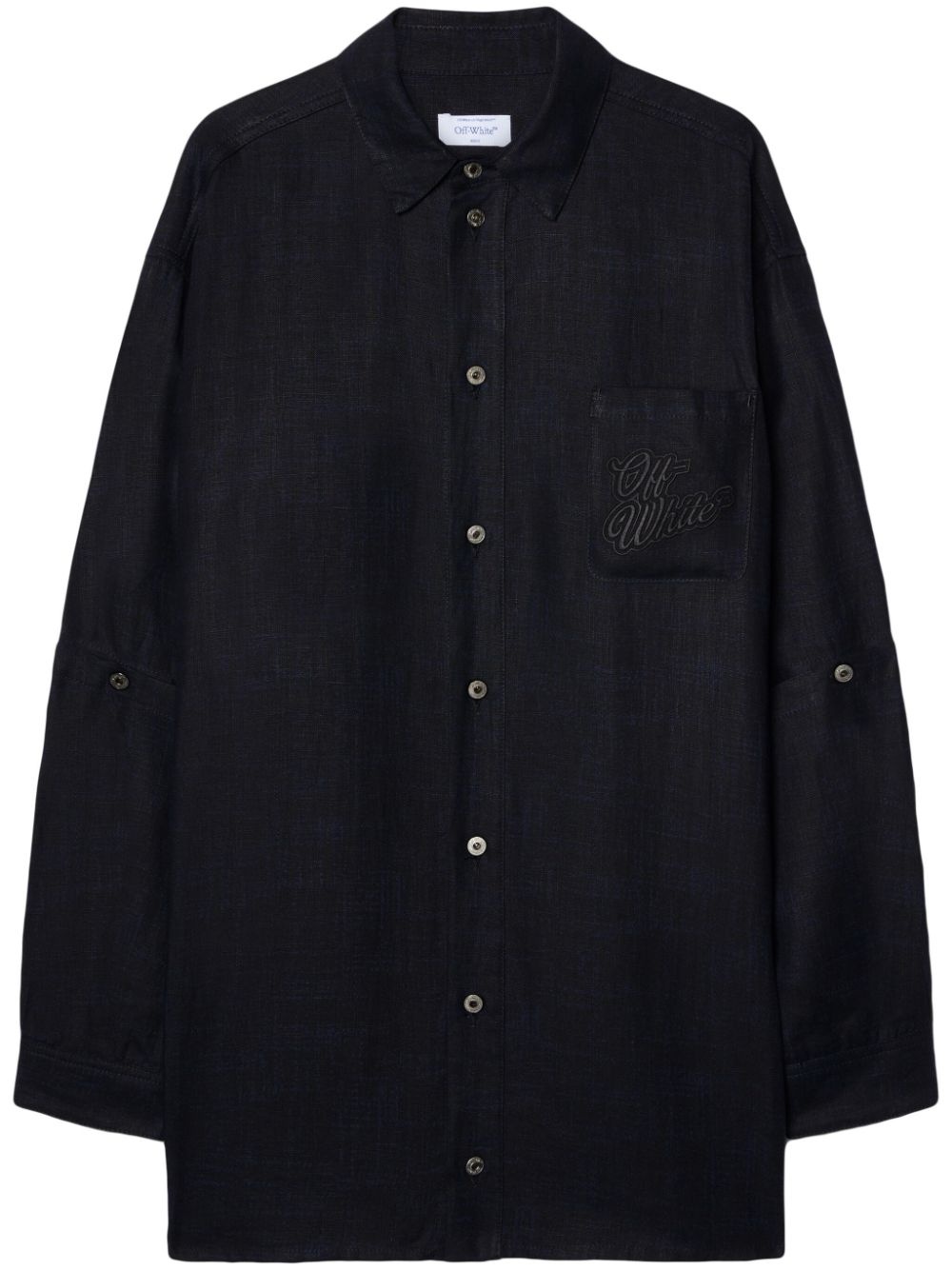 logo-embroidered panelled linen shirt jacket Highlights - Black - Linen/flax - Panelled design - Embroidered logo at the chest - Spread collar - Front button fastening - Long sleeves - Chest patch pocket - Straight hem Made in Italy Composition Linen/Flax 100% Washing instructions Read Manufacturer Guidelines