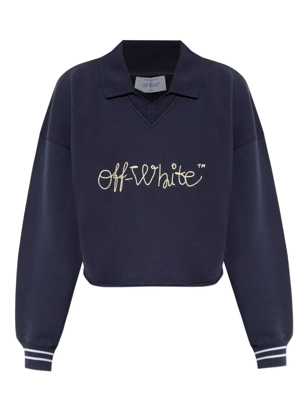 logo-embroidered polo sweatshirt Highlights - Navy blue - Embroidered logo - Polo collar - V-neck - Ribbed trim Imported Composition Cotton 100% Washing instructions Read Manufacturer Guidelines