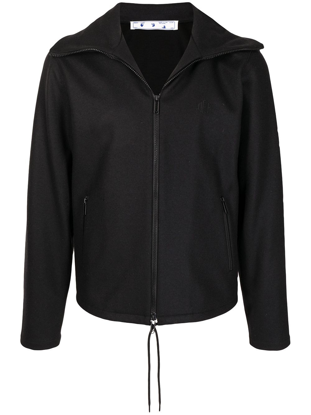 logo-embroidered spread-collar jacket Off-White takes an unusual pared-back approach to branding with this spread-collar jacket. Presented in a black colourway, this piece is detailed with a tonal logo embroidered Made in Italy Composition Wool 70%, Polyamide 28%, Elastane 2% SIZE & FIT Model measurements Height 6 ft 2 in(1.87 m) Bust/Chest 35.43 in(90 cm) Hips 36.41 in(92.5 cm) Waist 27.55 in(70 cm) FittingInformation This piece fits true to size. We recommend you get your regular size Cut for a loose fit Made with a mid-weight fabric Washing instructions Dry Clean Only
