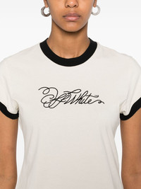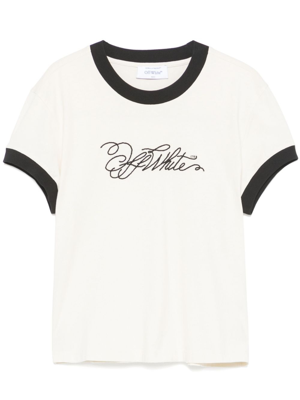 logo-embroidered T-shirt Highlights - Light beige - Crew neck - Contrasting border - Short sleeves Imported Composition Cotton 100% SIZE & FIT Model measurements Height 5 ft 10 in(1.77 m) Bust/Chest 33.07 in(84 cm) Hips 37 in(94 cm) Waist 24.8 in(63 cm) Measurement SLEEVE LENGTH 5.9 in(15 cm) LENGTH 21.25 in(54 cm) BUST 38.58 in(98 cm) Shoulder Width 16.92 in(43 cm) FittingInformation Designed for a slim fit that sits just away from the body offering a close yet comfortable fit Made from a midweight non-stretch fabric, this piece offers minimal elasticity when worn Washing instructions Machine Wash