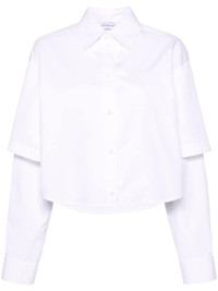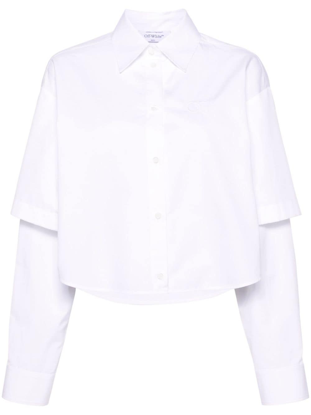 logo-embroidery layered cotton shirt Cut in Italy from crisp cotton poplin, this white shirt from Off-White boasts a layered design that nods to the brand's contemporary take on timeless silhouettes. It falls to a cropped boxy-fit that's adorned with an embroidered logo at the chest. Highlights - White - Cotton - Poplin texture - Layered design - Classic collar - Front button fastening - Long sleeves - Buttoned cuffs - Embroidered logo at the chest - Cropped - Curved hem Made in Italy Composition Cotton 100% SIZE & FIT Model measurements Height 5 ft 10 in(1.78 m) Bust/Chest 31.49 in(80 cm) Hips 35.03 in(89 cm) Waist 23.62 in(60 cm) FittingInformation Designed to be unstructured, offering a loose fit throughout Made from a midweight non-stretch fabric This piece fits true to size – take your usual size