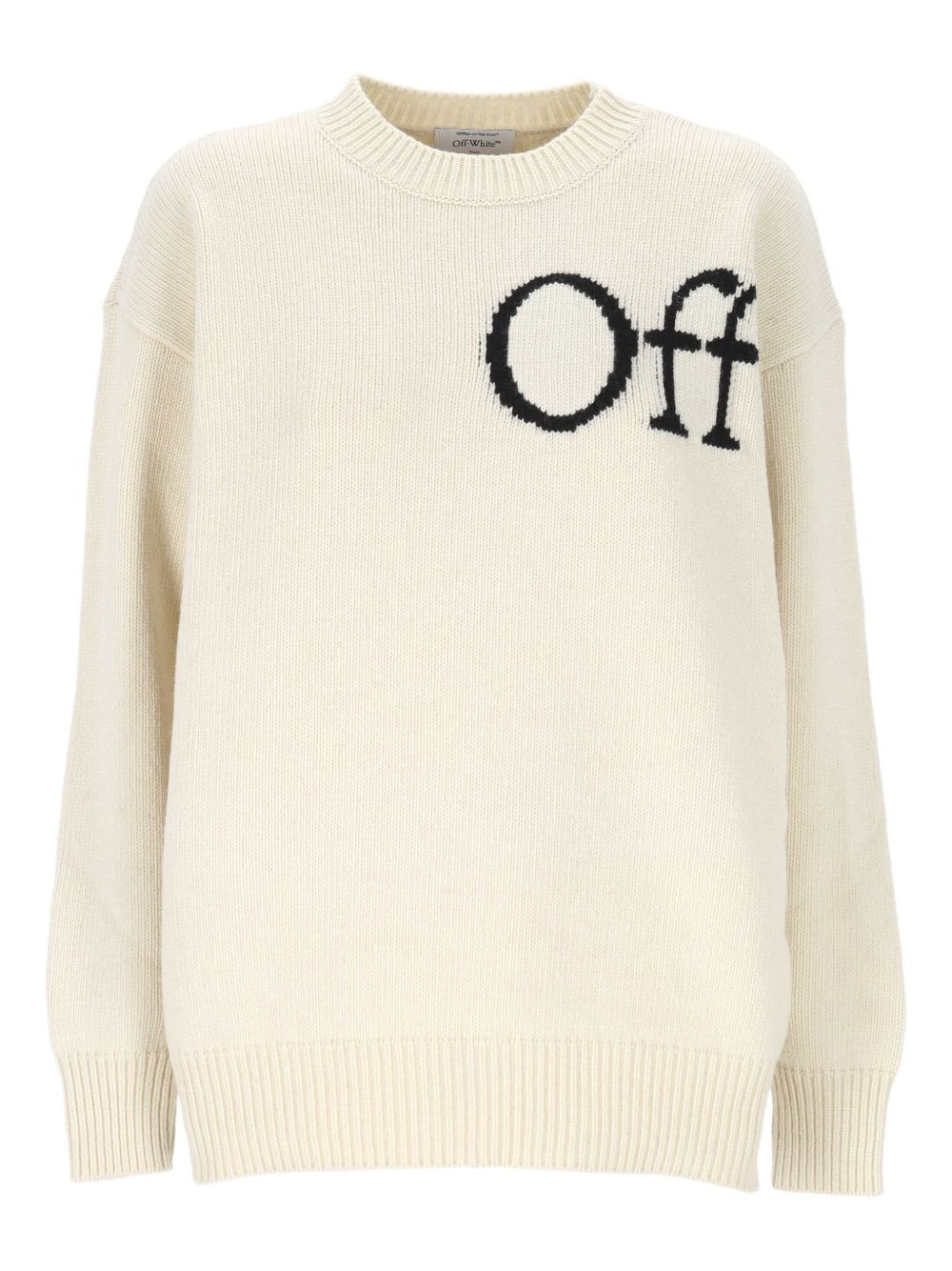 logo-intarsia wool sweater Highlights - Off-white - Wool - Intarsia logo - Crew neck - Long sleeves - Ribbed trim Made in Italy Composition Virgin Wool 100% Washing instructions Read Manufacturer Guidelines