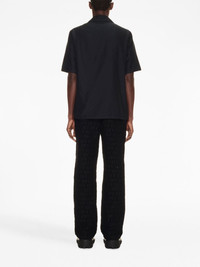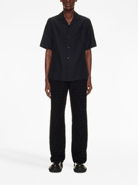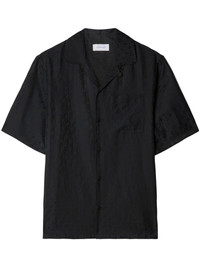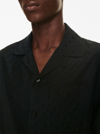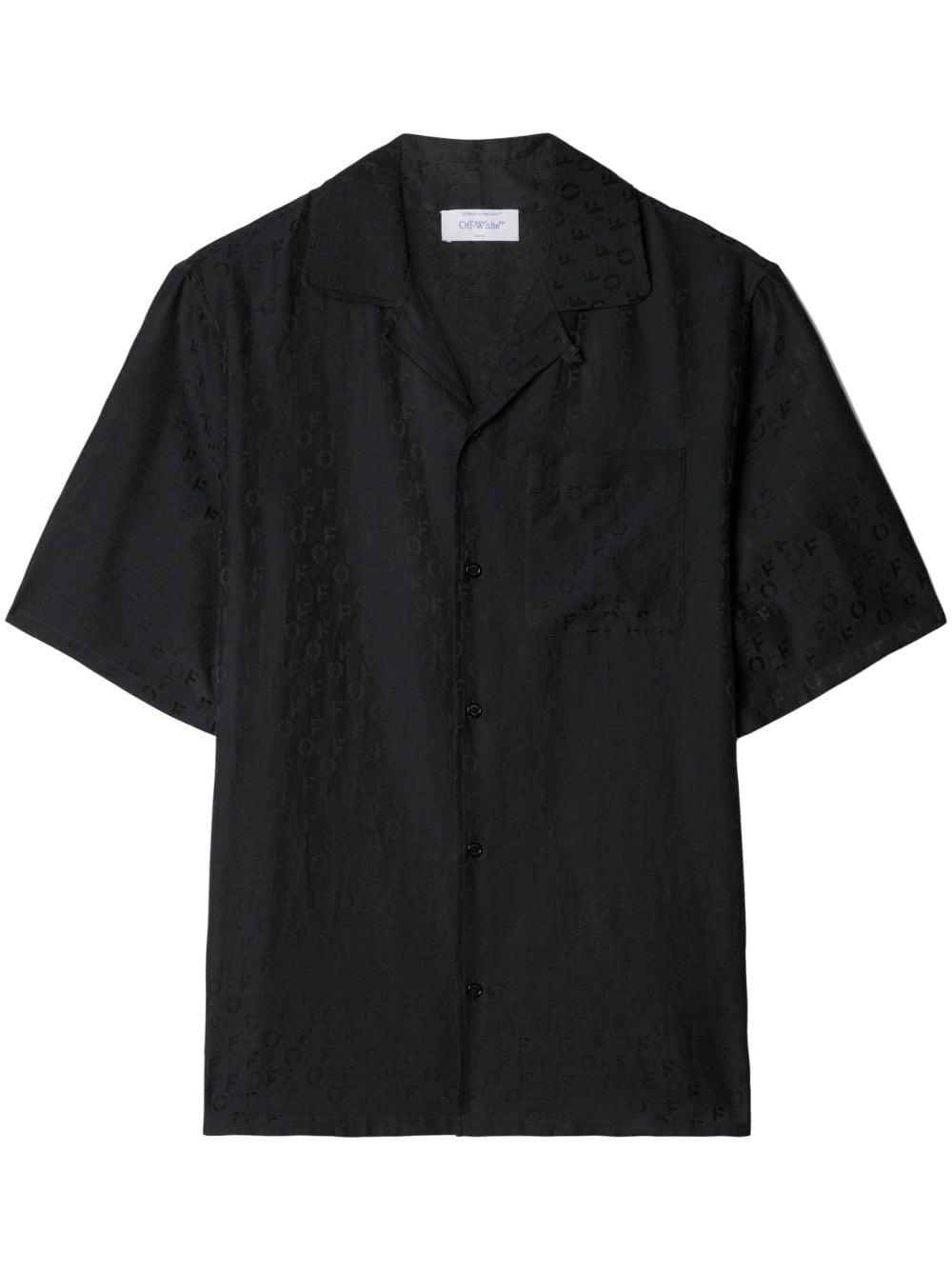 logo-jacquard camp-collar shirt Imagined in black, this shirt by Off-White is decorated with an overall logo jacquard that brings a discreet branding touch to the tonal design. Crafted from a blend of silk and cotton, it features a camp collar and comes with a chest pocket. Highlights - Black - Silk-cotton blend - Jacquard logo motif - Camp collar - Front button fastening - Chest patch pocket - Short sleeves - Straight hem Made in Italy Composition Silk 56%, Cotton 44%