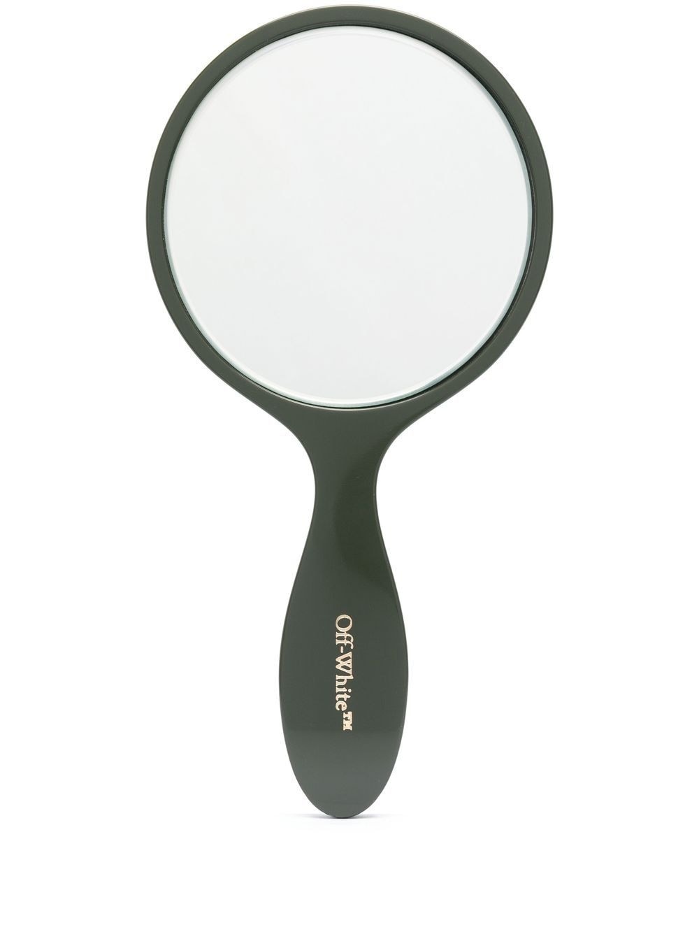 logo-lettering mirror This Off-White mirror is minimally designed. The dark green model is subtly detailed with logo lettering along the handle. Imported Composition Plastic 100%, glass 100%