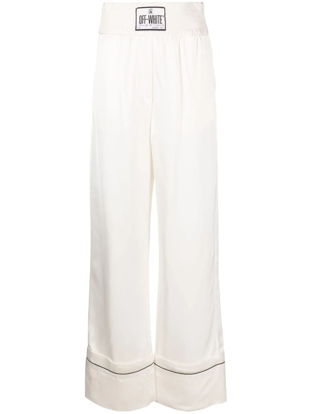 logo-patch elasticated-waist trousers In line with Off-White's branding-focused style, these trousers are adorned with a branded patch at the waist for an unmistakable finish. Made in Italy Composition Polyester 100%, Viscose 100% Washing instructions Dry Clean Only