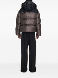 logo-patch puffer jacket Highlights - Black/grey - Econyl® - Panelled design - Padded panels - Logo patch at the chest - Drawstring hood - High neck - Drop shoulder - Long sleeves - Two side welt pockets - Straight hem Made in Italy Composition Lining: Polyester 100%, Polyamide 100% Outer: ECONYL® 100%