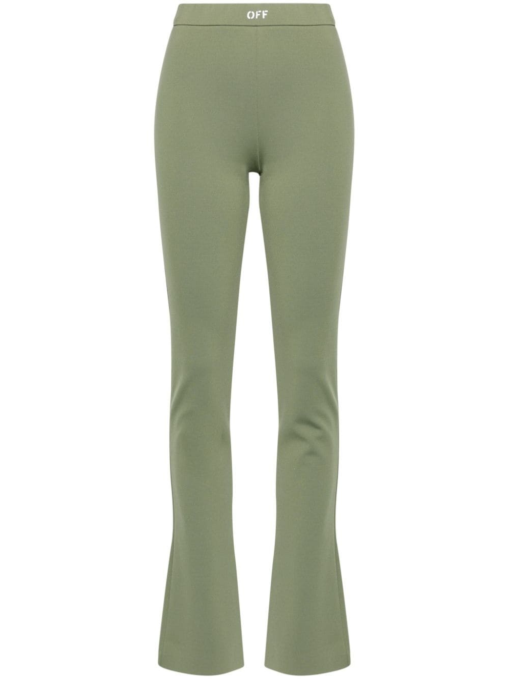logo-print bootcut leggings Highlights - Khaki - Soft scuba jersey - Elasticated waistband - Logo waistband - Short side slits - Bootcut - Unlined - No fastening Made in Italy Composition Polyamide 86%, Elastane 14% SIZE & FIT Model measurements Height 5 ft 9 in(1.75 m) Bust/Chest 31.88 in(81 cm) Hips 34.64 in(88 cm) Waist 24.01 in(61 cm) FittingInformation Designed for a close fit throughout The elasticated waist allows for a comfortable fit Made from a midweight stretch fabric, this piece offers elasticity and flexibility when worn This piece fits true to size – take your usual size