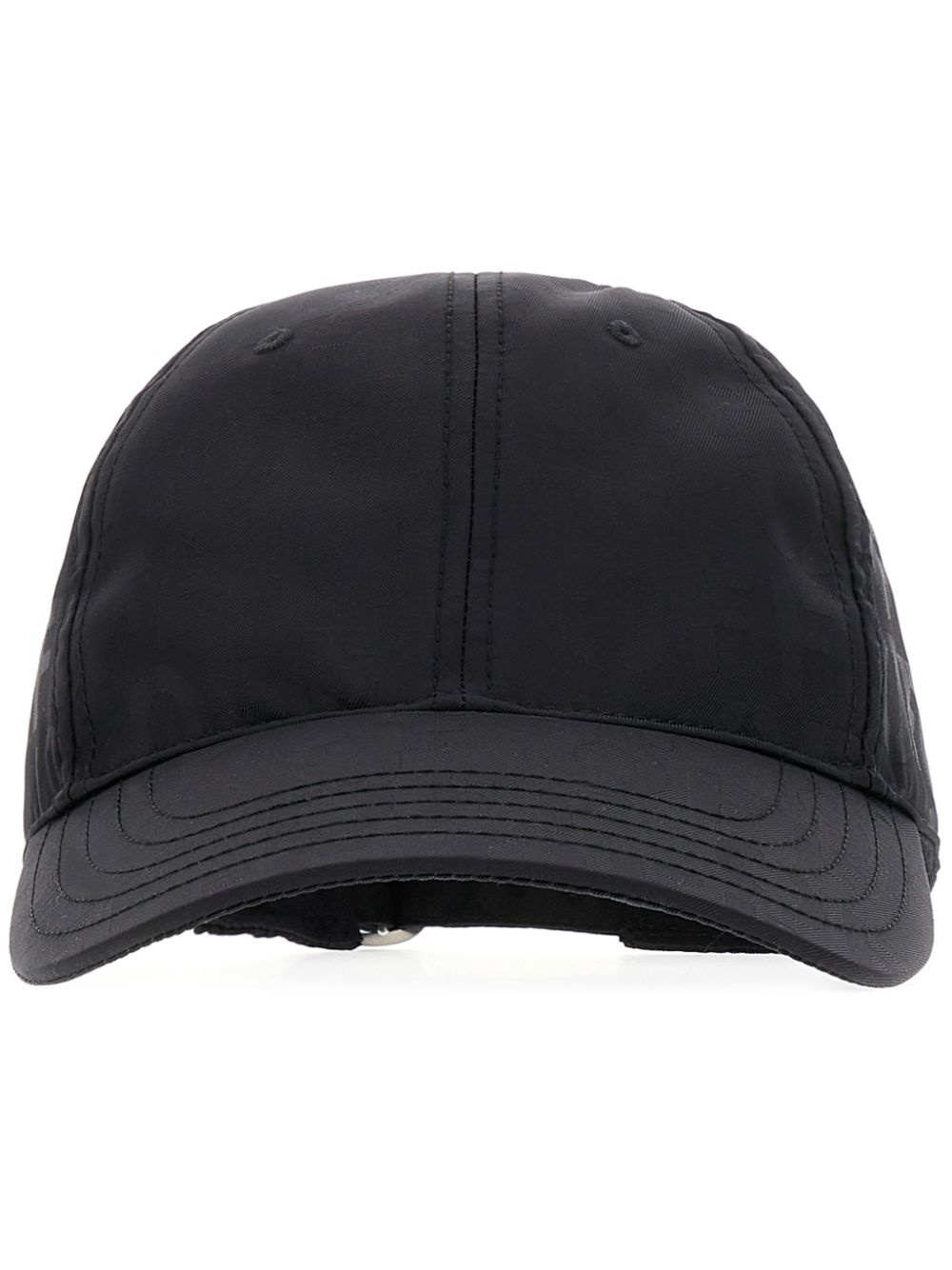 logo-print cap Highlights - Black - Textured finish - All-over logo print - Six-panel construction - Eyelet vents - Cut-out detailing - Adjustable strap to the rear - Curved peak Made in Italy Composition Nylon 100%