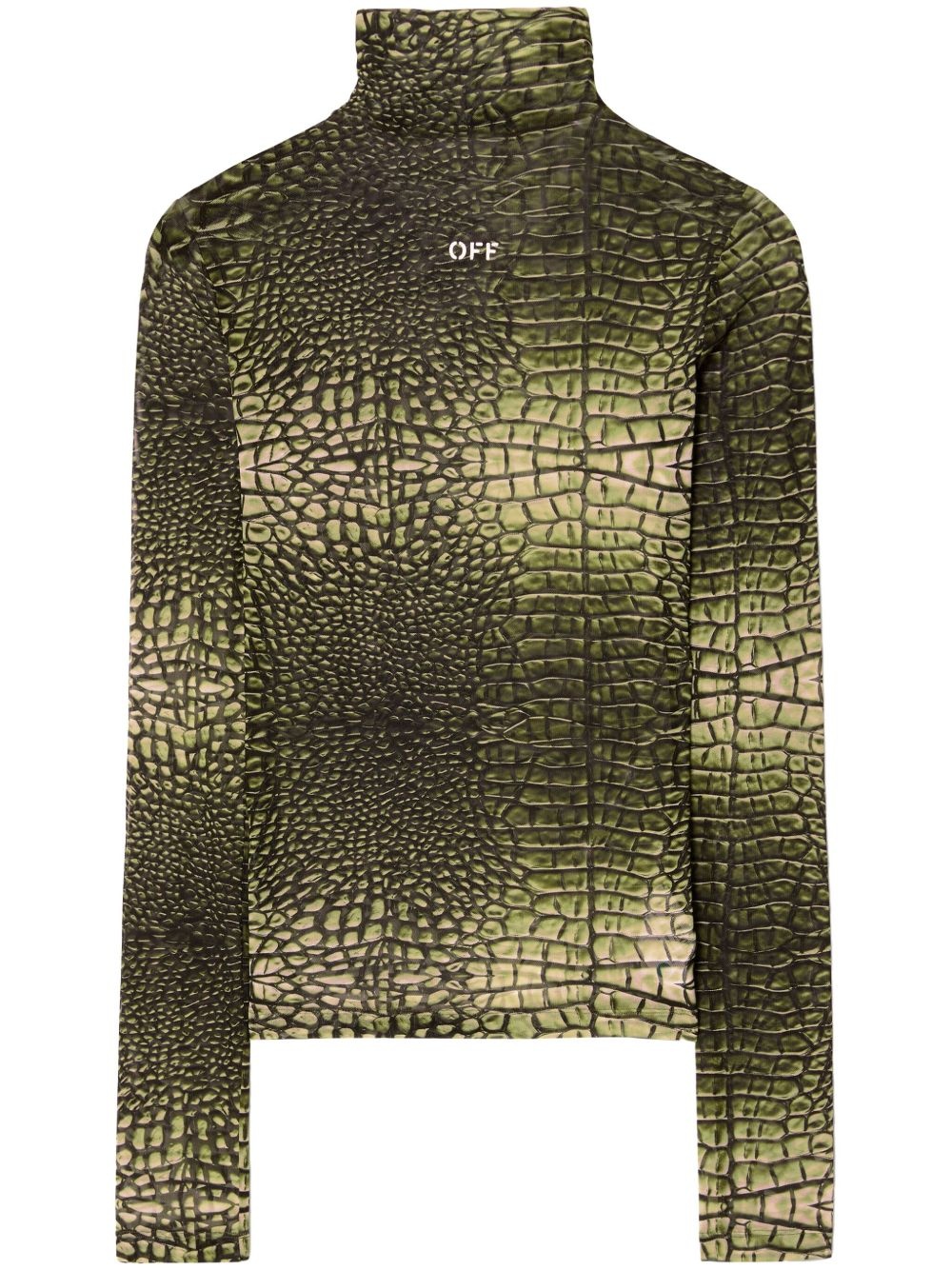 logo-print crocodile-effect T-shirt Highlights - Olive green - Mesh design - High neck - Long sleeves - Straight hem Made in Italy Composition Polyamide 93%, Spandex/Elastane 7% Washing instructions Dry Clean Only