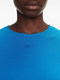 logo-print draped top This cobalt-blue top reflects Off-White’s penchant for statement details. It’s cut from stretch jersey and adorned with draping at the front. Highlights - Cobalt blue - Stretch-jersey - Round neck - Logo print to the front - Draped detailing - Long sleeves - Straight hem Made in Italy Composition Viscose 95%, Elastane 5% Washing instructions Read Manufacturer Guidelines