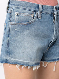logo-print frayed-edge denim shorts Made from cotton, these OFF-WHITE denim mini shorts are designed with a raw-cut hem. The pair are elevated by a brand bio print to the front, stating that the label is 'defining the grey area between black and white.' Highlights - Blue - Cotton - Logo print to the side - Raw-cut hem - Mid-rise - Belt loops - Front button and zip fastening - Whiskering effect at the thighs - Logo patch to the rear - Classic five pockets - Contrast stitching Made in Italy Composition Outer: Cotton 100% Lining: Cotton 100% SIZE & FIT Model measurements Height 5 ft 10 in(1.77 m) Bust/Chest 35.03 in(89 cm) Hips 35.03 in(89 cm) Waist 23.62 in(60 cm) FittingInformation This piece fits true to size. We recommend you get your regular size Designed to be fitted at the waist and hips, loose over the leg Made with a mid-weight non-stretch fabric Measurement FRONT RISE 10.62 in(27 cm) Washing instructions Machine Wash