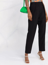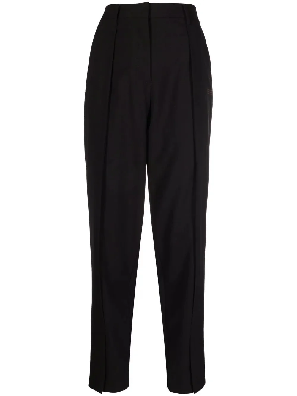 logo-print tailored trousers Off-White’s take on a time-honoured style features branded detailing for a signature look. Made from a soft virgin wool blend, these tailored trousers have been designed with a classic straight leg and accented with a front logo print. Highlights - Black - Virgin wool blend - Logo print to the front - High waist - Belt loops - Front button and zip fastening - Two side inset pockets - Two rear welt pockets Made in Italy Composition Lining: Polyester 100% Outer: Polyester 53%, Virgin Wool 43%, Spandex/Elastane 4% Washing instructions Hand Wash