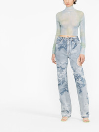 logo-print tie-dye crop top Off-White's minimalist, streetwear-inspired design style is showcased on this long-sleeve top which features a logo print at the front of the design in a contrasting colourway. Made in Italy Composition Polyamide 70%, Polyester 30% SIZE & FIT Model measurements Height 5 ft 10 in(1.78 m) Bust/Chest 30.7 in(78 cm) Hips 34.64 in(88 cm) Waist 23.22 in(59 cm) Washing instructions Machine Wash