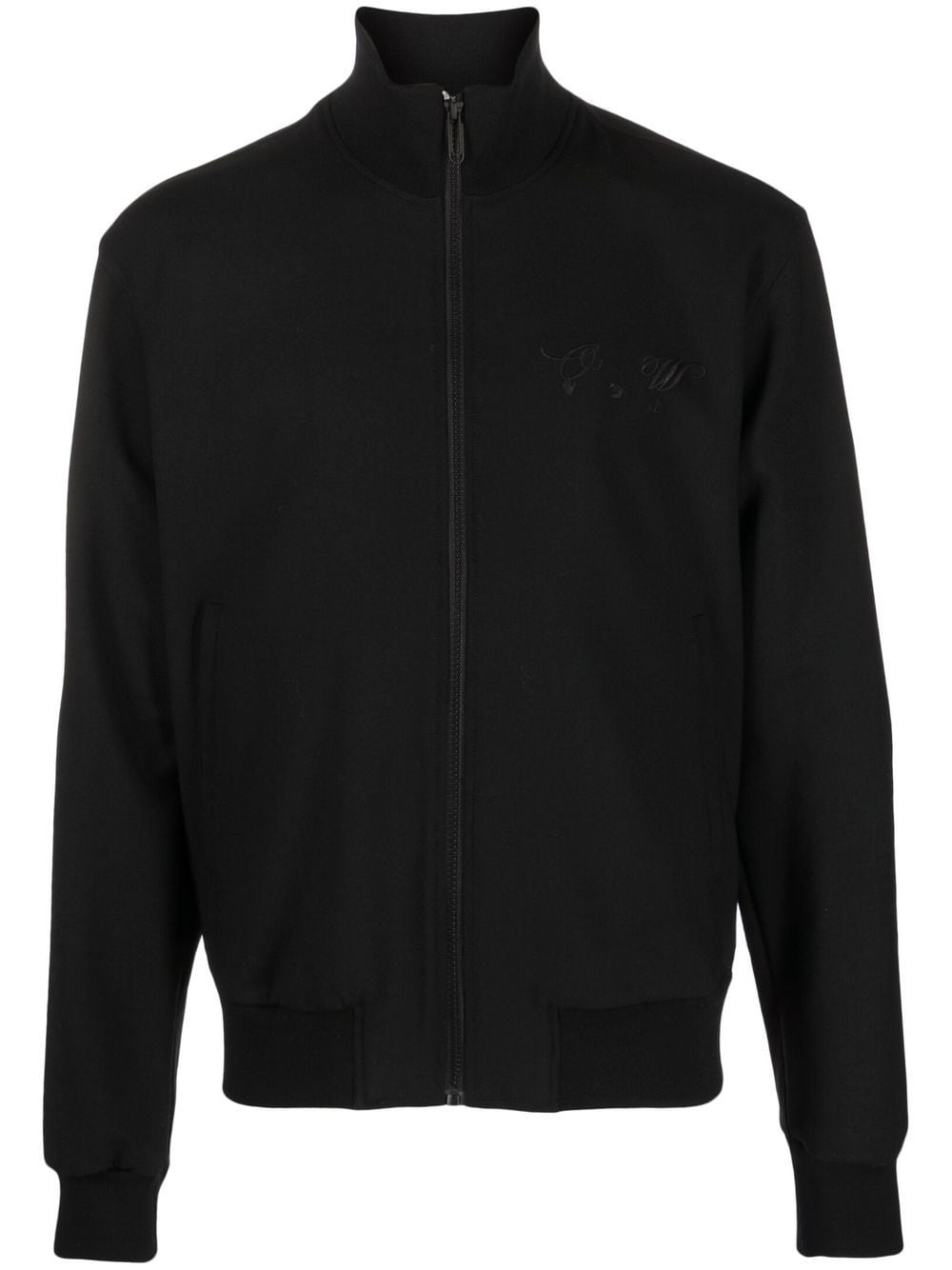 logo-print tracksuit top Off-White lends its signature quote motif to this sportswear staple. Presented in a stark black colourway with a tonal logo print at the chest, this piece is reminiscent of training tops. The Off-White quote motif features at the rear of the top, lending the piece its streetwear edge. Made in Italy Composition Outer: Virgin Wool 94%, Lycra 5%, Polyamide 1% Lining: Cotton 100% SIZE & FIT Model measurements Height 6 ft 1 in(1.85 m) Bust/Chest 31.88 in(81 cm) Hips 33.07 in(84 cm) Waist 26.77 in(68 cm) FittingInformation This piece fits true to size. We recommend you get your regular size Cut for a loose fit Made with a mid-weight fabric Washing instructions Dry Clean Only
