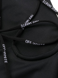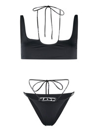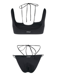 logo-print two-piece bikini Off-White's signature modern aesthetic is encapsulated in the minimalist design of this bikini. The black-hued two-piece has an understated design, which is adorned with logo-printed tie straps at the neck and waist. Highlights - Black - Stretch-design - Square neck - Halterneck tie fastening - Logo print to the rear - High cut - Tied waist - Logo print to the rear - Be mindful to try on swimwear over your own garments. Made in Italy Composition Polyester 78%, Spandex/Elastane 22%