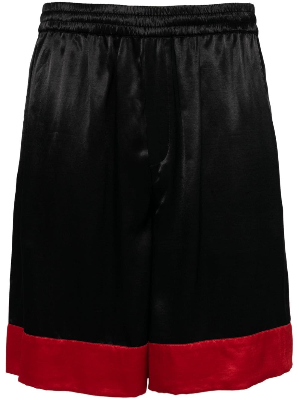 logo-print wide-leg track shorts Highlights - Black/red - Satin weave - Logo print to the rear - Elasticated waistband - Two side slash pockets - Two rear patch pockets - Wide leg - Knee-length Made in Italy Composition Viscose 100% SIZE & FIT Model measurements Height 6 ft 2 in(1.87 m) Bust/Chest 34.25 in(87 cm) Hips 36.22 in(92 cm) Waist 29.52 in(75 cm) FittingInformation Designed for relaxed fit, offering a comfortable loose fit over the leg The elasticated waist allows for a comfortable fit Made from a midweight non-stretch fabric This piece fits true to size – take your usual size Washing instructions Hand Wash