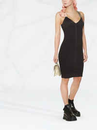 logo straps V-neck mini dress Off-White adds its signature logo to the criss-cross straps of this black dress, cut for a fitted silhouette that falls just above the knee. With an elegant V-shaped neckline, this versatile SS22 pick is infused with the brand's signature industrial-inspired accents. Highlights - Black - Rear criss-cross straps - Logo embellished straps - V-neck - Panelled design - Above-knee length Made in Italy Composition Polyester 88%, Nylon 9%, Spandex/Elastane 3% SIZE & FIT Model measurements Height 5 ft 10 in(1.78 m) Bust/Chest 32.28 in(82 cm) Hips 35.03 in(89 cm) Waist 23.22 in(59 cm) FittingInformation This piece fits true to size. We recommend you get your regular size Cut for a close fit Made with a mid-weight stretch fabric Washing instructions Dry Clean Only