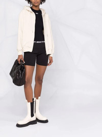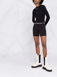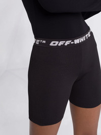 logo-waistband sports shorts A two-tone design creates a pared-back look for these shorts from Off-White. This allows the logo waistband to take the focus on the sports-style pair. Highlights - Black/grey - Logo waistband - Two-tone design - Stretch-design Made in Italy Composition Polyester 75%, Polyamide 20%, Elastane 5% Washing instructions Dry Clean Only