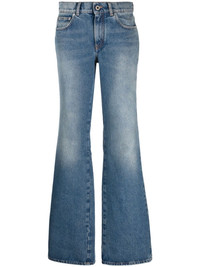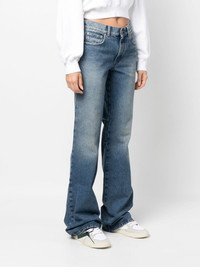 low-rise flared jeans Crafted in a washed denim design, these Off-White jeans sit low at the waist, falling to a relaxed flared leg that reflects the brand's streetwear inspiration. Highlights - Indigo blue - Cotton - Washed denim - Logo patch to the rear - Low-rise - Belt loops - Concealed fly and button fastening - Classic five pockets - Flared Made in Italy Composition Outer: Cotton 100% Lining: Polyester 65%, Cotton 35% SIZE & FIT Model measurements Height 5 ft 9 in(1.75 m) Bust/Chest 33.07 in(84 cm) Hips 35.03 in(89 cm) Waist 24.01 in(61 cm) Measurement FRONT RISE 9.05 in(23 cm) INSIDE LEG 35.03 in(89 cm) HIPS 36.22 in(92 cm) FittingInformation Designed with a wide leg cut, these jeans allow for a close fit at the waist and offer a loose and roomy fit over the leg Sturdy and hard-wearing, this denim piece offers no stretch This piece fits true to size – take your usual size Washing instructions Machine Wash