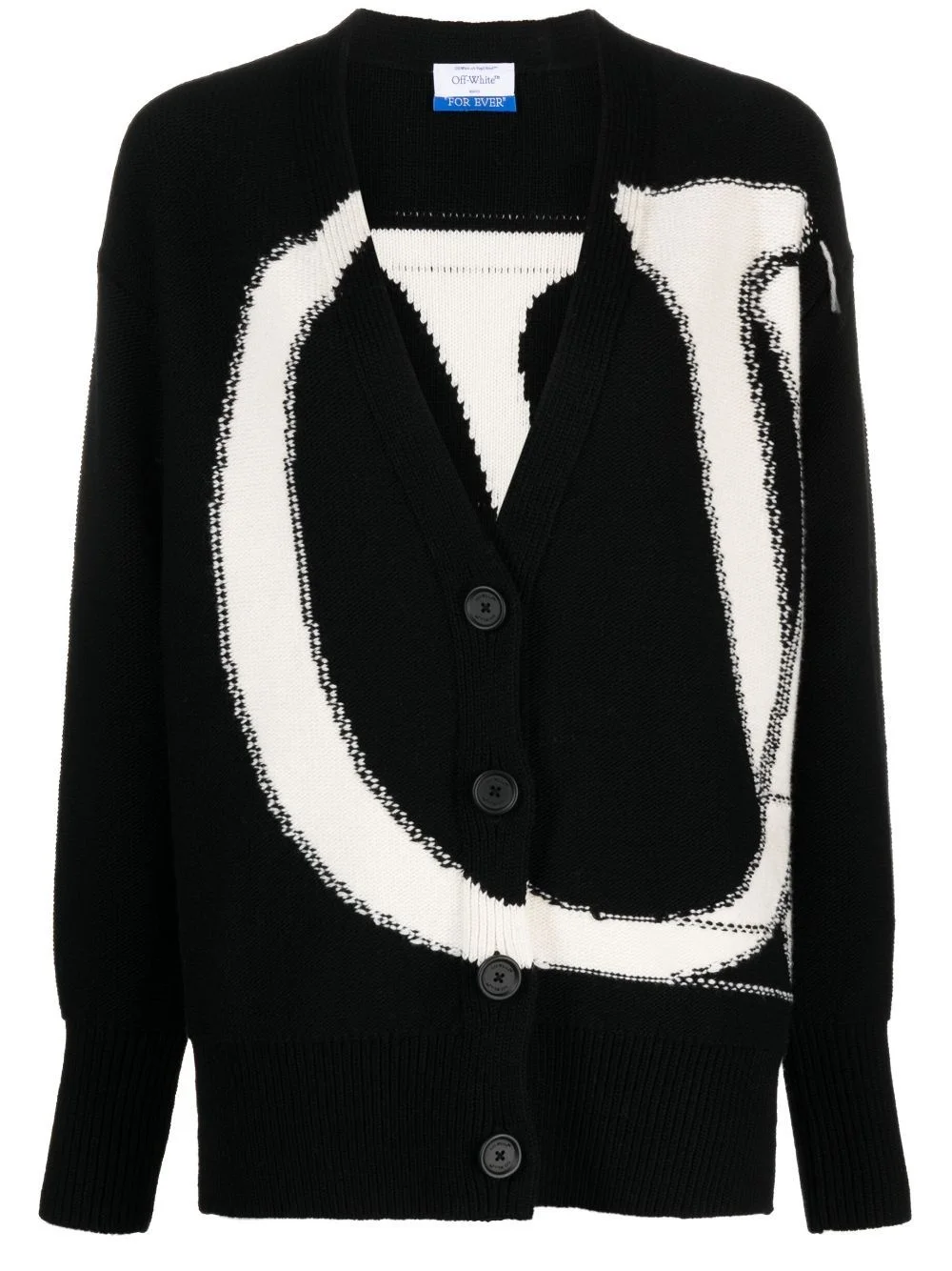 maxi logo-intarsia wool cardigan Off-White's affinity for reinvented branding is showcased on this black wool cardigan; the brand’s monogram is intarsia-knit around the loose silhouette, complete with loose threads for an inside-out effect. Highlights - Black/white - Wool - Knitted construction - Intarsia-knit logo - V-neck - Long sleeves - Ribbed cuffs and hem - Side slits - Step hem - Front button fastening Made in Italy Composition Wool 100% SIZE & FIT Measurement SLEEVE LENGTH 21.25 in(54 cm) LENGTH 28.34 in(72 cm) BUST 44.09 in(112 cm) Washing instructions Read Manufacturer Guidelines