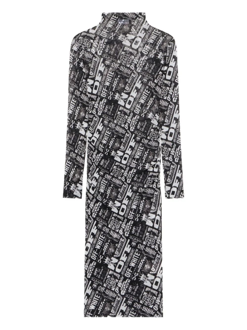 mesh multilogo dress Highlights - Black - Mesh construction - Multilogo print - High neck - Long sleeves - Gathered detail Made in Italy Composition Polyamide 100% Washing instructions Read Manufacturer Guidelines