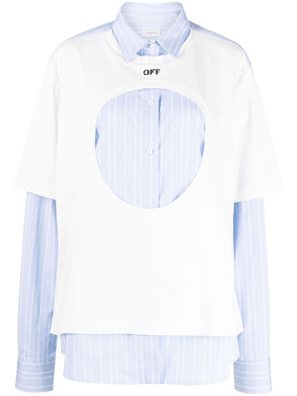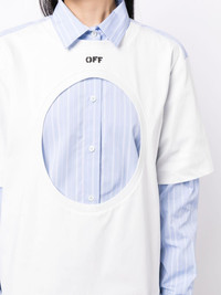 Meteor layered cotton shirt Off-White’s Meteor cut-out motif defines this shirt. Crafted from cotton, it boasts a layered T-shirt and shirt design to the front and is finished with a logo print near the collar. Highlights - Blue/white - Cotton - Cut-out detailing - Layered design - Logo print to the front - Classic collar - Long sleeves - Front button fastening - Straight hem Made in Italy Composition Trims: Cotton 100% Inner: Cotton 100% Body: Cotton 100% SIZE & FIT Model measurements Height 5 ft 10 in(1.77 m) Bust/Chest 28.74 in(73 cm) Hips 35.82 in(91 cm) Waist 24.4 in(62 cm) FittingInformation Designed for an oversized fit, offering additional room throughout Constructed with additional length on the sleeve Made from a midweight non-stretch fabric, this piece offers minimal elasticity when worn This piece fits true to size – take your usual size Washing instructions Hand Wash