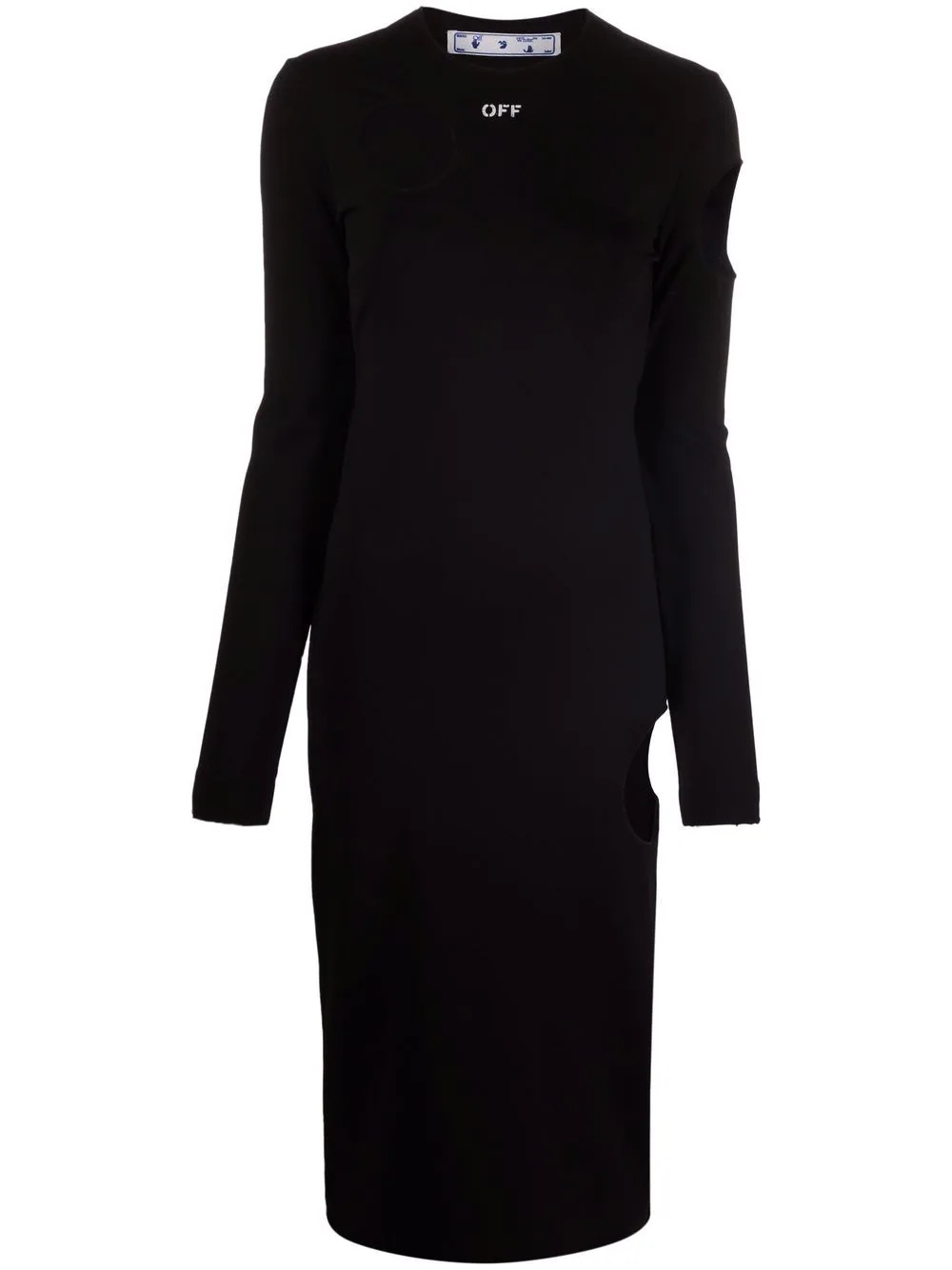 Meteor logo knitted dress A common theme throughout Off-White’s collections, the Metor motif is characterised by bold cut-out detailing, as seen in this black-hued dress. Alongside a chest logo, this pattern adds an unmistakable branded finish to this long-sleeved silhouette, offering a sense of charisma to its knitted design. Highlights - Black - Knitted construction - Logo print at the chest - Cut-out detailing - Crew neck - Long sleeves - Mid-length Made in Italy Composition Viscose 65%, Polyamide 30%, Spandex/Elastane 5% SIZE & FIT Model measurements Height 5 ft 11 in(1.8 m) Bust/Chest 32.67 in(83 cm) Hips 36.22 in(92 cm) Waist 24.4 in(62 cm) Measurement SLEEVE LENGTH 25.51 in(64.8 cm) HIPS 27 in(68.6 cm) LENGTH 47 in(119.4 cm) WAIST 25 in(63.5 cm) BUST 27.99 in(71.1 cm)