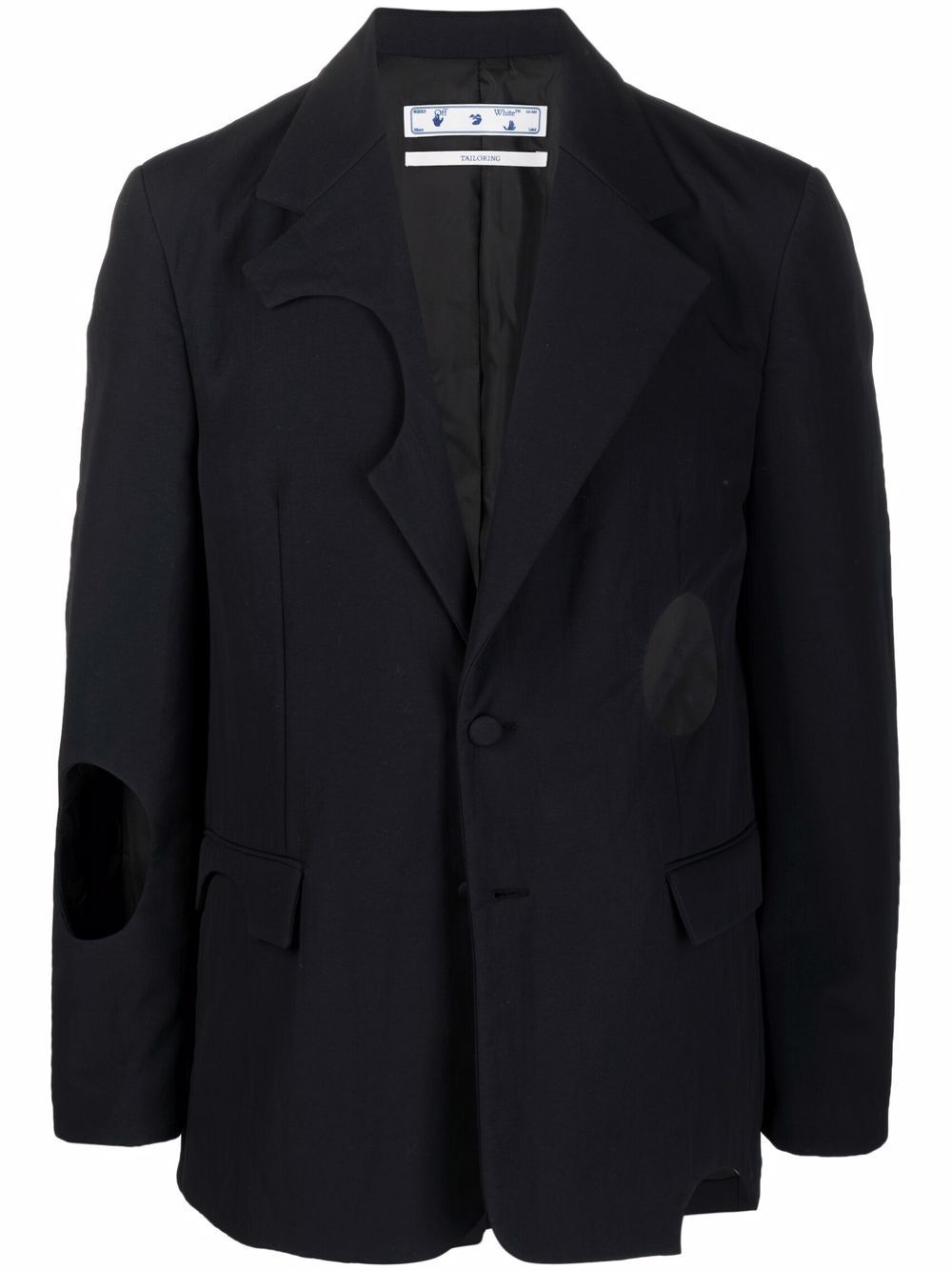 Meteor padded blazer So-called because of the large cut-out holes, this Meteor blazer look as though it's been attacked by a giant space-rock. Designed with light padding, this single-breasted jacket embodies OFF-WHITE's ever-evolving inspirations. Made in Italy Composition Outer: Polyamide 100% Lining: Polyester 100% SIZE & FIT Model measurements Height 6 ft 1 in(1.85 m) Bust/Chest 37.79 in(96 cm) Hips 37.4 in(95 cm) Waist 30.7 in(78 cm) FittingInformation This piece fits true to size. We recommend you get your regular size Cut for a loose fit Made with a mid-weight non-stretch fabric Washing instructions Dry Clean Only