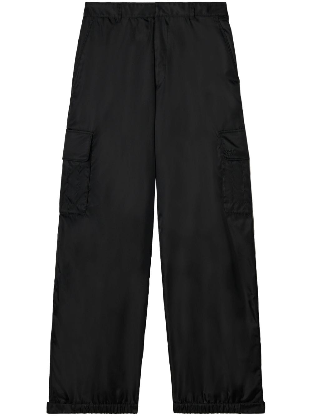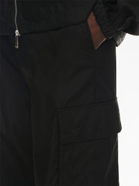 mid-rise cargo trousers Imagined in all-black, these cargo trousers by Off-White speak to the label's streetwear style. Boasting a relaxed silhouette, the pair is accented with tonal logo embroidery on the side, while adjustable ankle straps bring the possibility to alter the design. Highlights - Black - Mid-rise - Belt loops - Concealed front fastening - Two side slit pockets - Two side cargo pockets - Embroidered logo to the side - Straight leg - Elasticated ankles - Ankle strap Made in Italy Composition Polyamide 100%