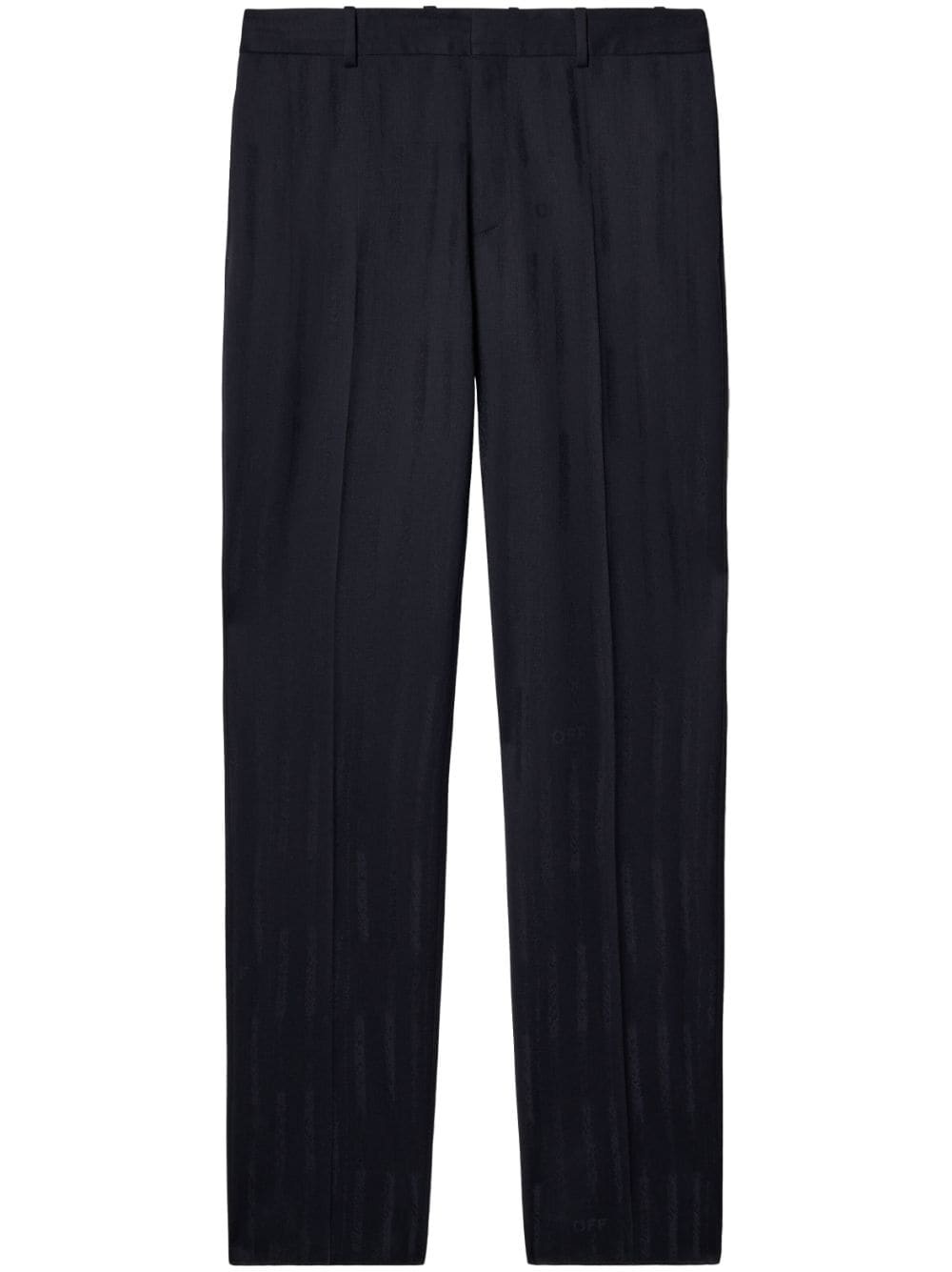 mid-rise tailored trousers Off-White takes a classic approach with these tailored trousers for the AW23 collection. Spun from a virgin wool blend, the pair is rendered in a dark shade of blue and features a relaxed silhouette that nods to the brand's streetwear aesthetic. Highlights - Midnight blue - Virgin wool blend - Mid-rise - Belt loops - Concealed front fastening - Two side slit pockets - Straight hem Made in Italy Composition Lining: Cotton 100%, Viscose 52%, Cupro 48% Outer: Virgin Wool 98%, Elastane 2% SIZE & FIT FittingInformation Designed for a straight-leg, allowing for an unrestricted and comfortable fit over the leg