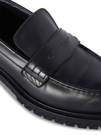 Military logo-debossed leather loafers Highlights - Black - Leather - Debossed logo to the front - Round toe - Whipstitch detailing - Slip-on style - Branded insole - Low stacked heel Made in Italy Composition Lining: Leather 100% Outer: Leather 100% Sole: Leather 100%
