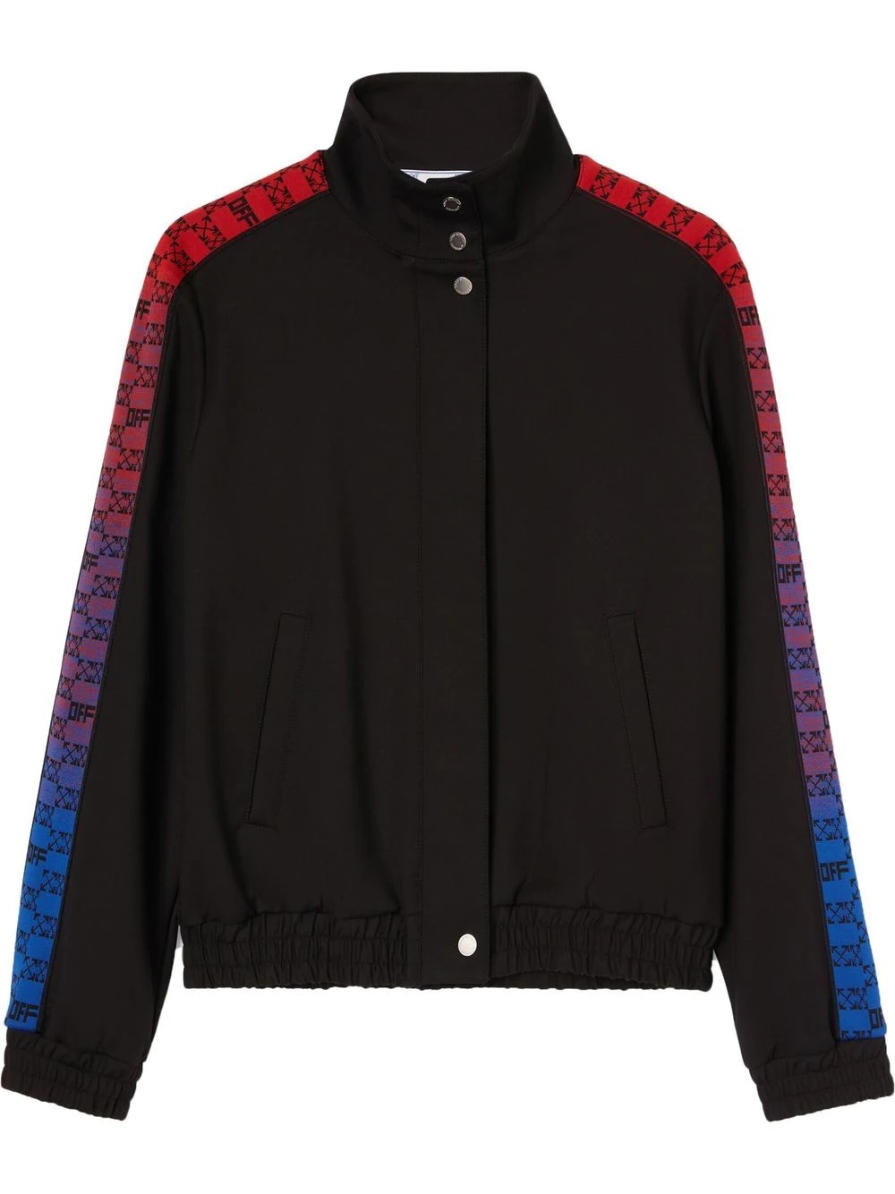 monogram-band track jacket The Arrows motif features throughout Off-White's collections, appearing on a range of pieces from belts to necklaces. Here, it makes up the iridescent monogram that adorns the sides of this track jacket. Made in Italy Composition Polyamide 61%, Cotton 35%, Elastane 4% Outer: Cotton 100%