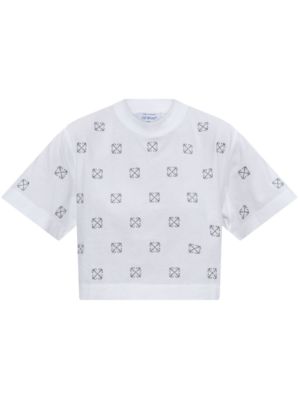monogram-embroidered cropped t-shirt Highlights - White - Embroidered logo - Cropped Imported Composition Cotton 100%