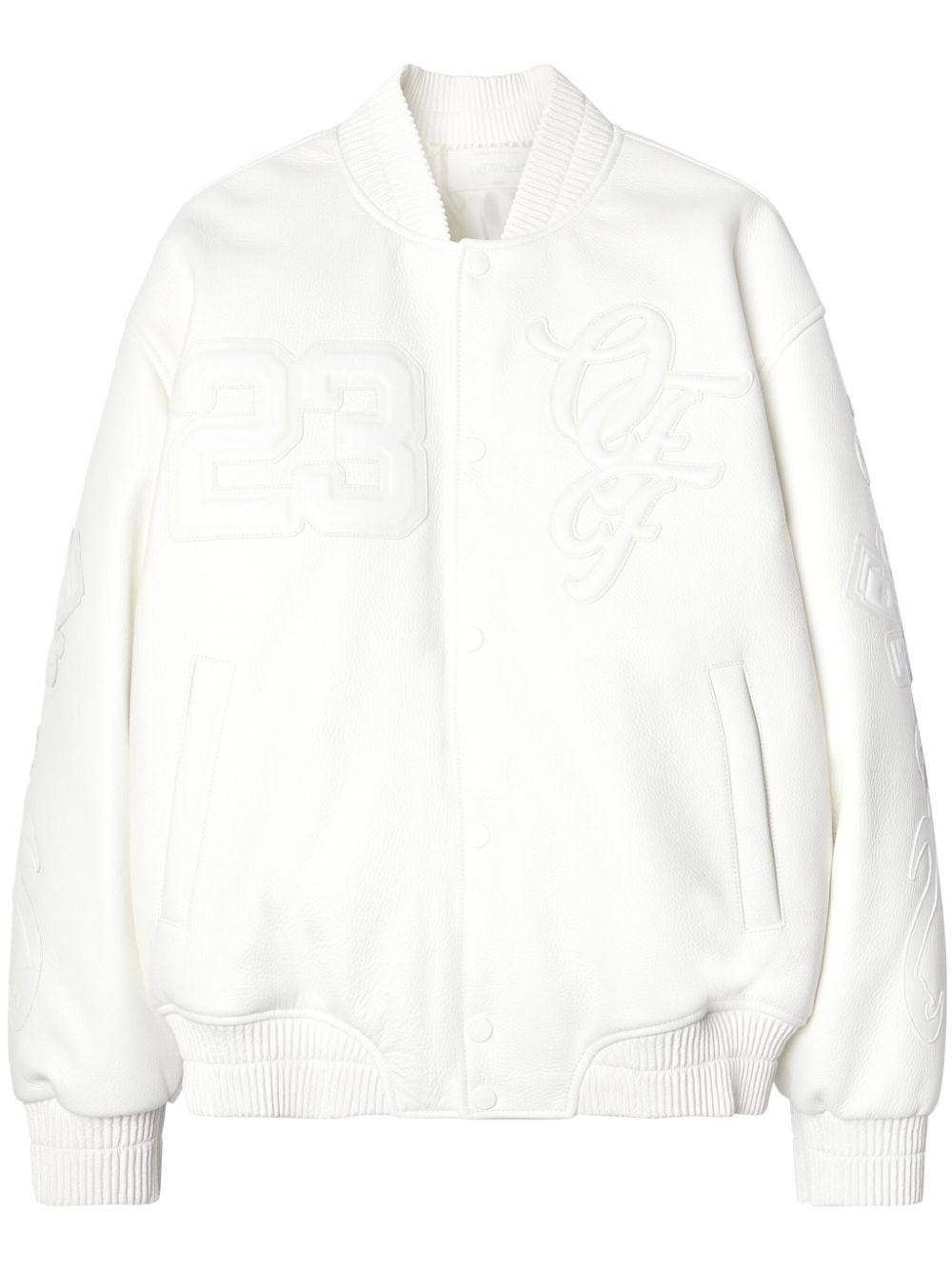 Natlover patch-detail bomber jacket Highlights - White - Cotton - Leather trim - Patch detail - Band collar - Long sleeves - Front press-stud fastening - Two side inset pockets - Straight hem - Ribbed cuffs and hem Imported Composition Lining: Polyester 100%, Cotton 100%, Viscose 52%, Cupro 48% Outer: Leather 100%