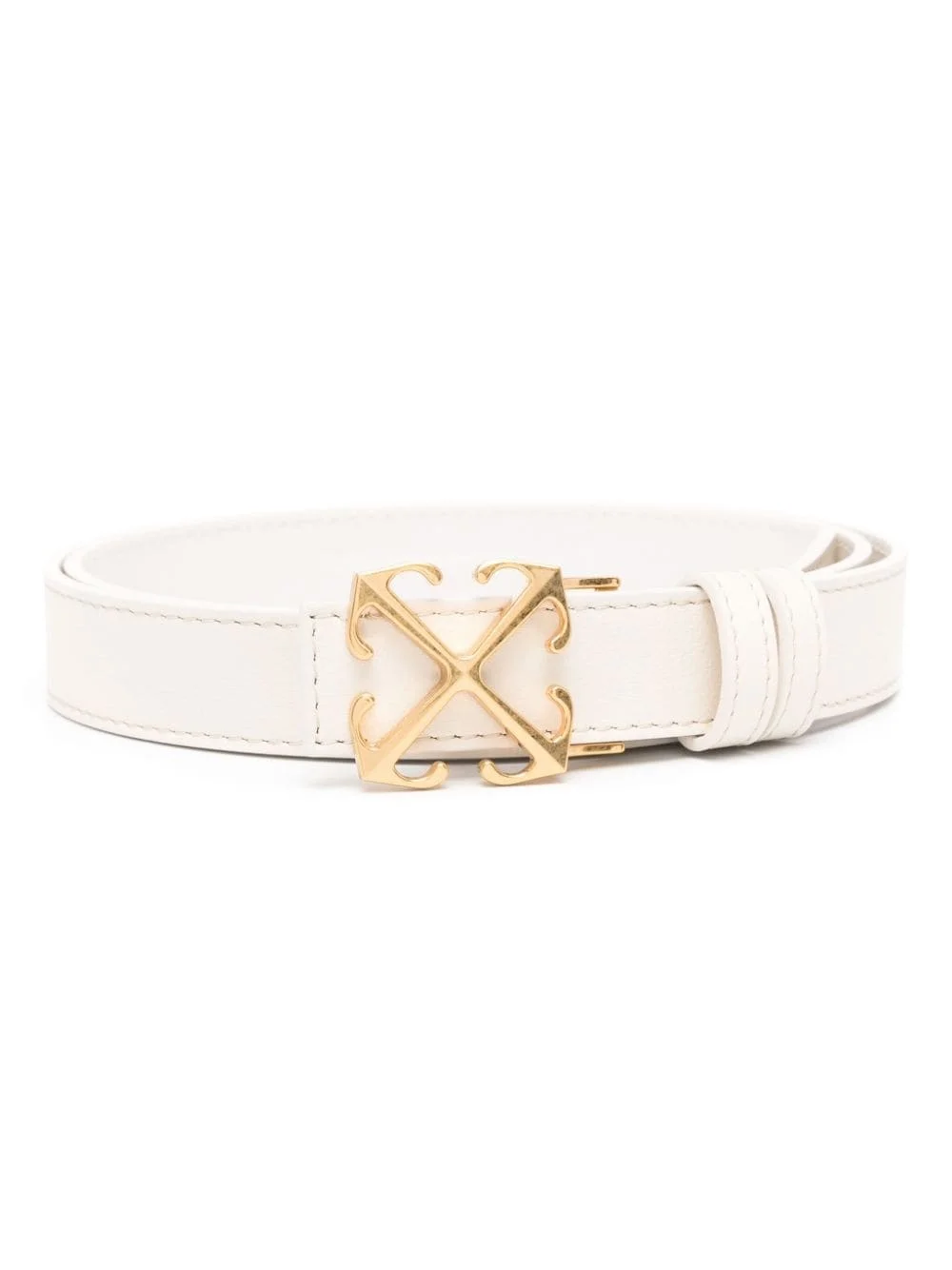 New Arrow leather belt Highlights - Ivory white/gold-tone - Calf leather - Smooth grain - Adjustable fit - Punched holes - Internal logo stamp - Signature arrows motif buckle fastening Made in Italy Composition Calf Leather 100% SIZE & FIT Measurement Maximum Length 35.43 in(90 cm) Minimum Length 31.49 in(80 cm) WIDTH 0.98 in(2.5 cm)