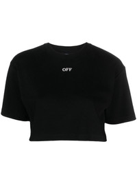 Off-Stamp cropped T-shirt Showcasing Off-White's affinity for effortless casuals, this ribbed T-shirt boasts a contemporary cropped silhouette whilst a logo print to the front adds an instantly recognisable touch. Highlights - Black - Stretch-cotton - Fine ribbed - Logo print to the front - Crew neck - Drop shoulder - Short sleeves - Straight hem - Cropped Made in Italy Composition Cotton 98%, Elastane 2% SIZE & FIT Model measurements Height 5 ft 10 in(1.78 m) Bust/Chest 31.49 in(80 cm) Hips 37 in(94 cm) Waist 23.62 in(60 cm) Measurement SLEEVE LENGTH 7.87 in(20 cm) LENGTH 13.77 in(35 cm) BUST 37.79 in(96 cm) FittingInformation Designed for a relaxed fit, this piece allows for comfort and movement when worn Cropped in length Made from a midweight stretch fabric, this piece offers elasticity and flexibility when worn This piece fits true to size – take your usual size Washing instructions Machine Wash